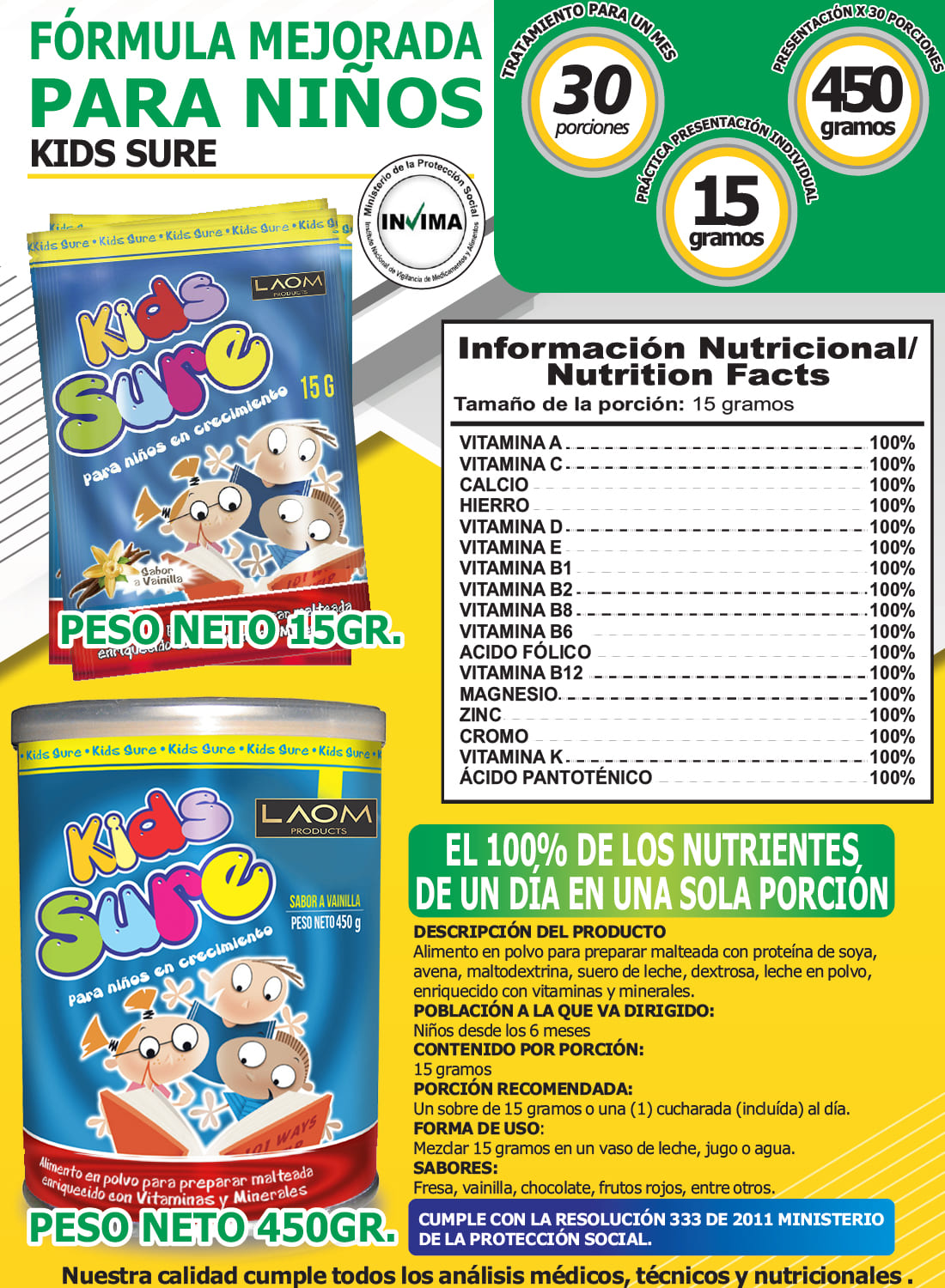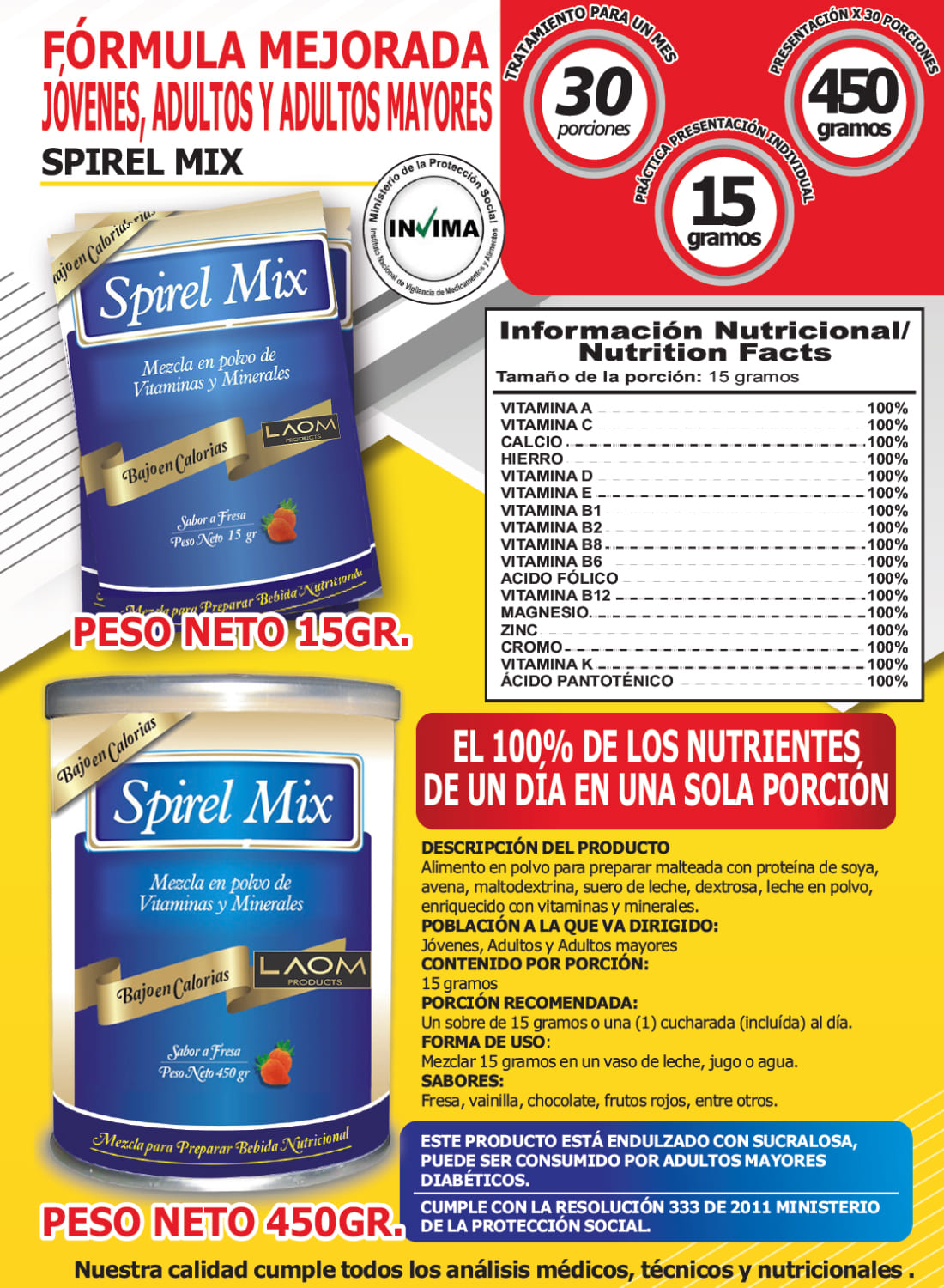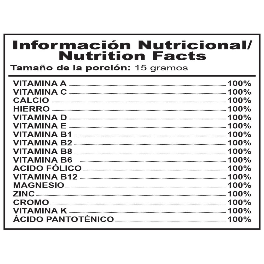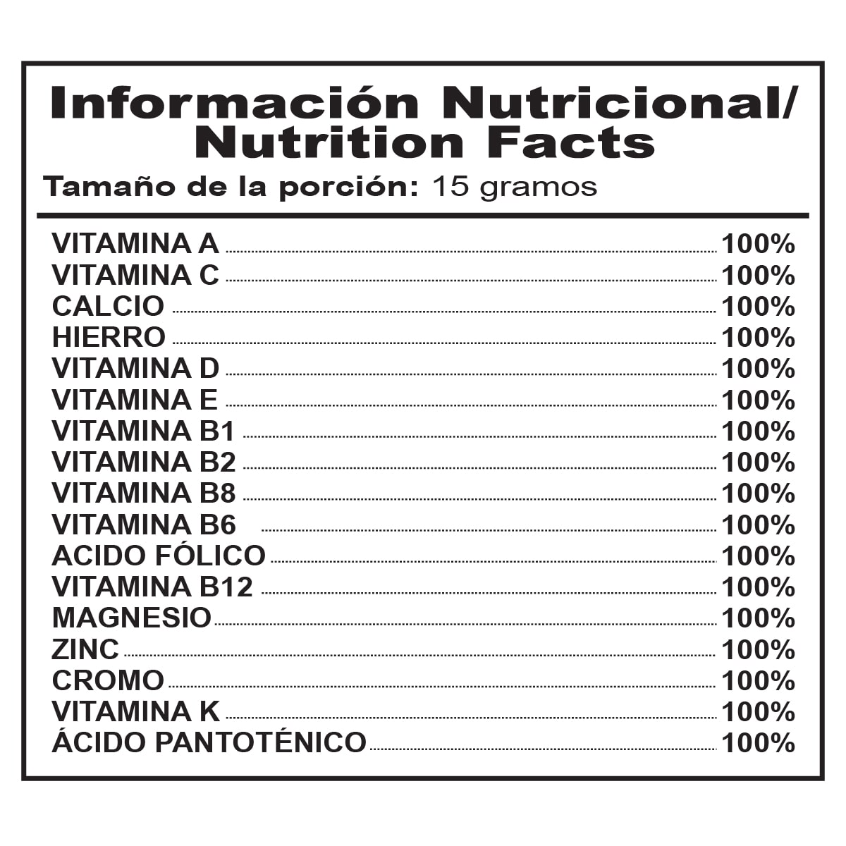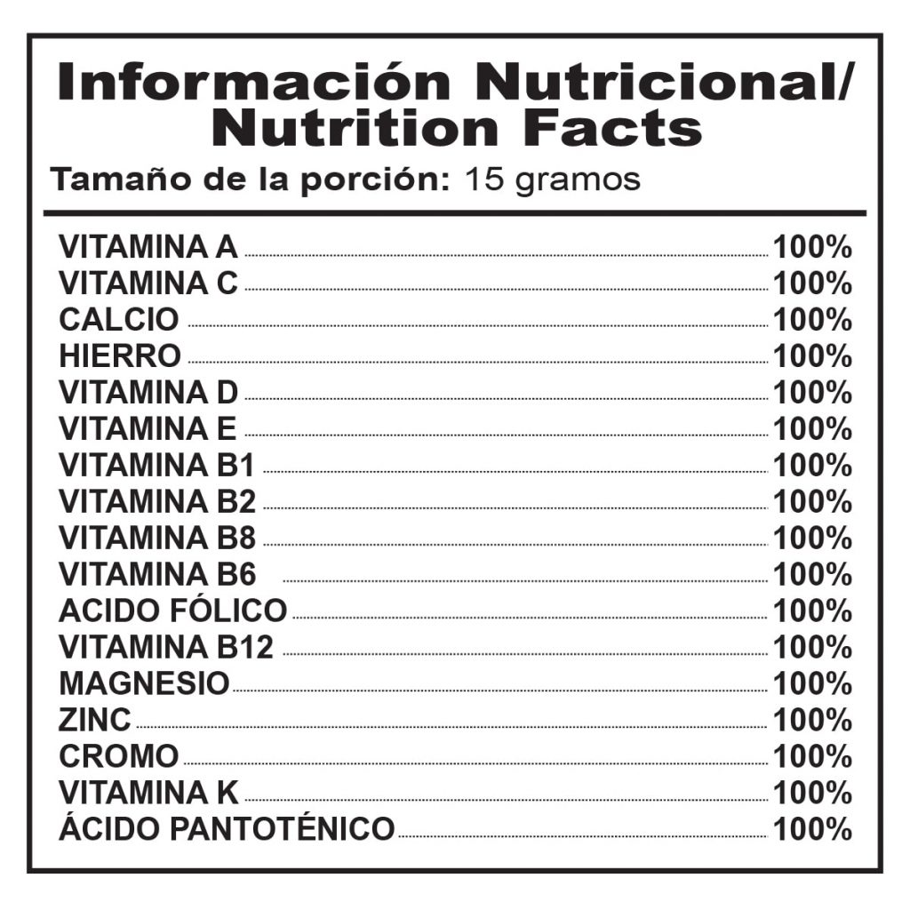 FORMA DE USO: Mezclar 15 gramos en un (1) vaso de leche, jugo o agua.