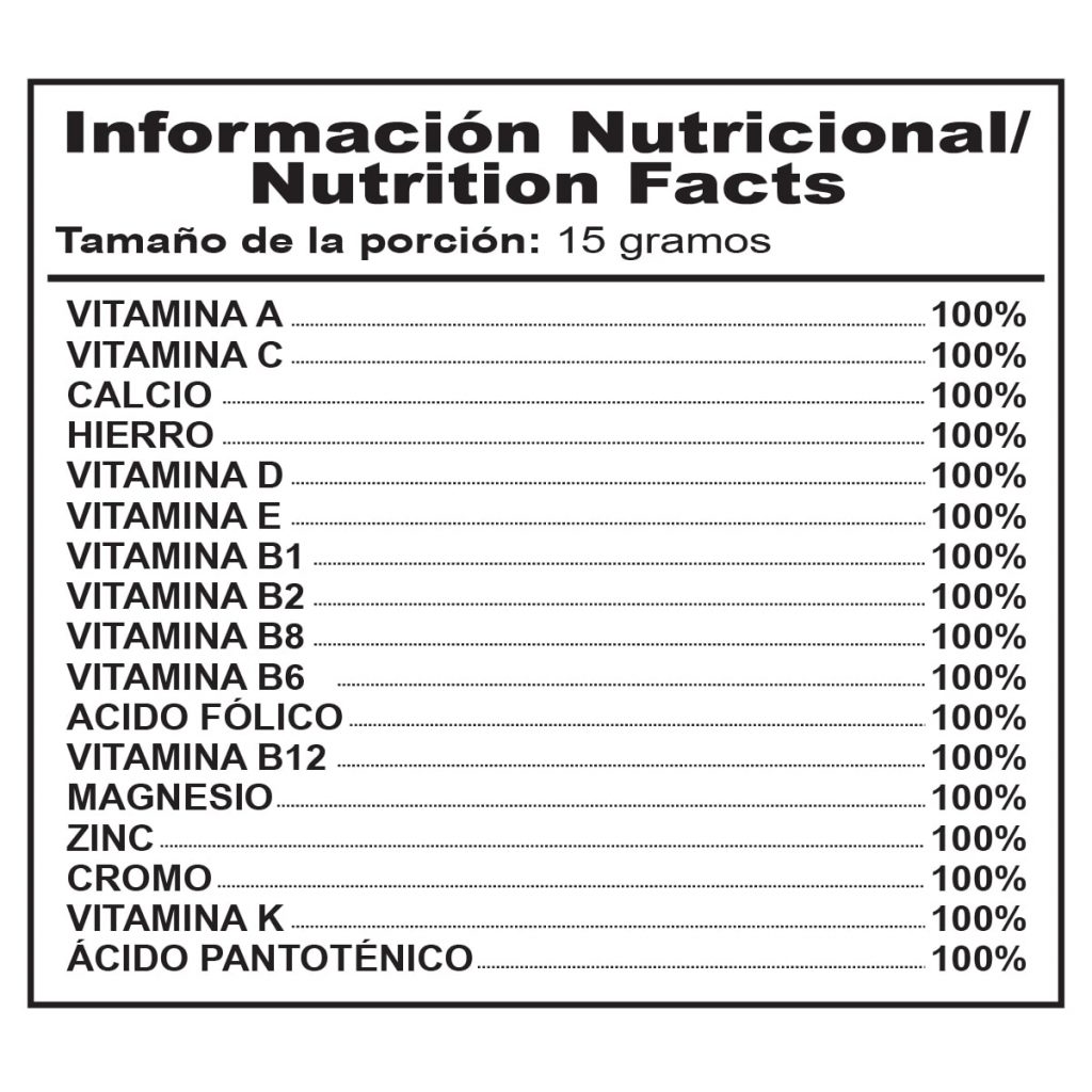 DESCRIPCIÓN DEL PRODUCTO: Alimento en polvo con proteína de suero de leche con vitaminas, minerales, ácido fólico y ácido pantoténico.